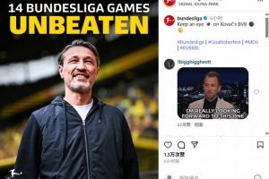 11胜3平!德甲官方晒科瓦奇海报:率领多特跨赛季14轮德甲不败
